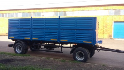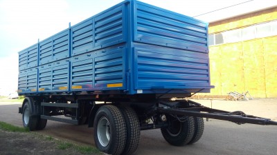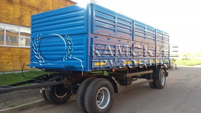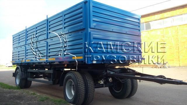 Прицеп может комплектоваться пологом с наматывающим устройством, задними распашными воротами, люком под зерномет.