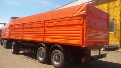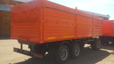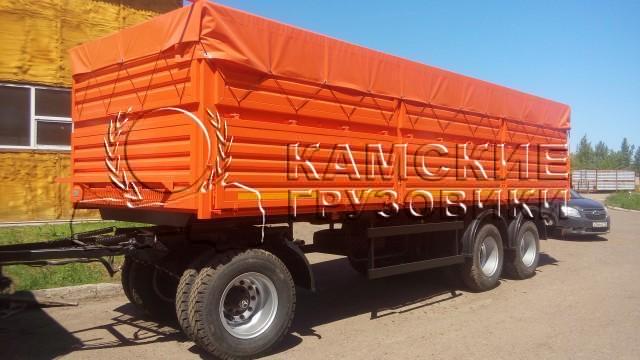 Прицеп может комплектоваться пологом с наматывающим устройством, задними распашными воротами, люком под зерномет.