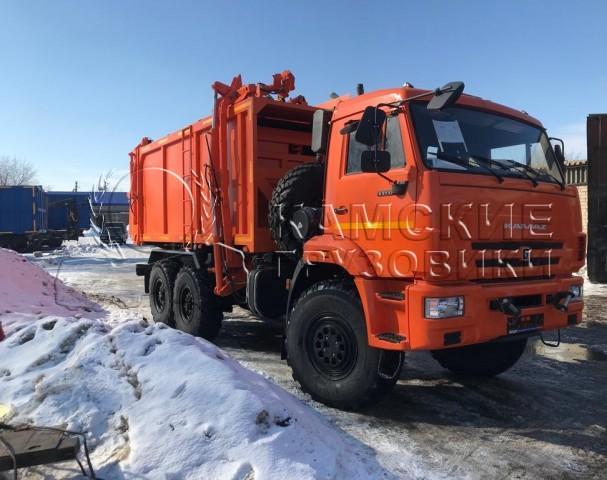 Уплотнение отходов в кузове производится толкающей плитой. Перемещение мусора по ширине кузова производится разравнивателем. Выгрузка осуществляется опрокидыванием кузова и толкающей плитой.