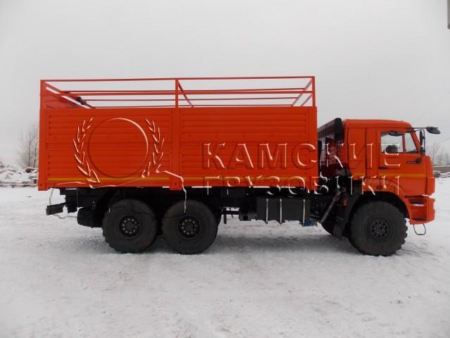 Основание конструкции усиленное, выполнено из конструкционной стали 09ГС, обработано антикоррозийным материалом, согласно требованиям завода изготовителя. Пол надстройки выполнен из рифленого листа 3мм, поперек пола расположены противоскользящие ребра из гнутого швеллера через каждые 400мм. Надстройка представляет собой стальной каркас, зашитый панелями специального гнутого профиля. Верхняя часть надстройки в летнее время открытое, сварено из профильной трубы, в зимнее время закрывается накидным пологом с передними, боковыми клапанами для вентиляции кузова, в количестве 2ед. на передней стенке, 6ед. с каждой стороны по бокам. С внутренней стороны кузова, , выполнены решетчатые перегородки 2ед. с калиткой из крашенного стального профиля, разделяющее внутреннее пространства. С наружной стороны надстройка окрашивается в цвет синий, либо оранжевый, либо иного цвета по желанию Заказчика, лакокрасочными материалами повышенной коррозийной стойкостью. Надстройка оборудована передними, задними и боковыми габаритными фонарями (питание от электросети автомобиля). Монтаж надстройки на шасси, согласно требованию завода изготовителя шасси. По периметру нанесена обязательная маркировка светоотражающая полоса. Установлены задние металлические крылья с резиновыми брызговиками.