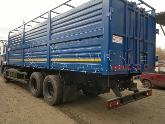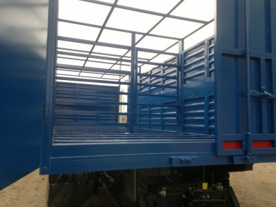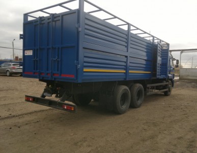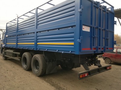 Основание конструкции усиленное, выполнено из конструкционной стали 09ГС, обработано антикоррозийным материалом, согласно требованиям завода изготовителя. Пол надстройки выполнен из рифленого листа 3мм, поперек пола расположены противоскользящие ребра из гнутого швеллера через каждые 400мм. Надстройка представляет собой стальной каркас, зашитый панелями специального гнутого профиля. Верхняя часть надстройки в летнее время открытое, сварено из профильной трубы, в зимнее время закрывается накидным пологом с передними, боковыми клапанами для вентиляции кузова, в количестве 2ед. на передней стенке, 6ед. с каждой стороны по бокам. С внутренней стороны кузова, , выполнены решетчатые перегородки 2ед. с калиткой из крашенного стального профиля, разделяющее внутреннее пространства. С наружной стороны надстройка окрашивается в цвет синий, либо оранжевый, либо иного цвета по желанию Заказчика, лакокрасочными материалами повышенной коррозийной стойкостью. Надстройка оборудована передними, задними и боковыми габаритными фонарями (питание от электросети автомобиля). Монтаж надстройки на шасси, согласно требованию завода изготовителя шасси. По периметру нанесена обязательная маркировка светоотражающая полоса. Установлены задние металлические крылья с резиновыми брызговиками.