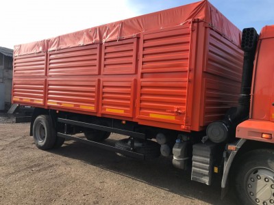 Основание конструкции усиленное, выполнено из конструкционной стали 09ГС, обработано антикоррозийным материалом, согласно требованиям завода изготовителя. Пол надстройки выполнен из рифленого листа 3мм, поперек пола расположены противоскользящие ребра из гнутого швеллера через каждые 400мм. Надстройка представляет собой стальной каркас, зашитый панелями специального гнутого профиля. Верхняя часть надстройки в летнее время открытое, сварено из профильной трубы, в зимнее время закрывается накидным пологом с передними, боковыми клапанами для вентиляции кузова, в количестве 2ед. на передней стенке, 6ед. с каждой стороны по бокам. С внутренней стороны кузова, , выполнены решетчатые перегородки 2ед. с калиткой из крашенного стального профиля, разделяющее внутреннее пространства. С наружной стороны надстройка окрашивается в цвет синий, либо оранжевый, либо иного цвета по желанию Заказчика, лакокрасочными материалами повышенной коррозийной стойкостью. Надстройка оборудована передними, задними и боковыми габаритными фонарями (питание от электросети автомобиля). Монтаж надстройки на шасси, согласно требованию завода изготовителя шасси. По периметру нанесена обязательная маркировка светоотражающая полоса. Установлены задние металлические крылья с резиновыми брызговиками.