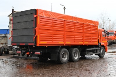 снование конструкции усиленное, выполнено из конструкционной стали 09ГС, обработано антикоррозийным материалом, согласно требованиям завода изготовителя. Пол надстройки выполнен из рифленого листа 3мм, поперек пола расположены противоскользящие ребра из гнутого швеллера через каждые 400мм. Надстройка представляет собой стальной каркас, зашитый панелями специального гнутого профиля. Верхняя часть надстройки в летнее время открытое, сварено из профильной трубы, в зимнее время закрывается накидным пологом с передними, боковыми клапанами для вентиляции кузова, в количестве 2ед. на передней стенке, 6ед. с каждой стороны по бокам. С внутренней стороны кузова, , выполнены решетчатые перегородки 2ед. с калиткой из крашенного стального профиля, разделяющее внутреннее пространства. С наружной стороны надстройка окрашивается в цвет синий, либо оранжевый, либо иного цвета по желанию Заказчика, лакокрасочными материалами повышенной коррозийной стойкостью. Надстройка оборудована передними, задними и боковыми габаритными фонарями (питание от электросети автомобиля). Монтаж надстройки на шасси, согласно требованию завода изготовителя шасси. По периметру нанесена обязательная маркировка светоотражающая полоса. Установлены задние металлические крылья с резиновыми брызговиками.